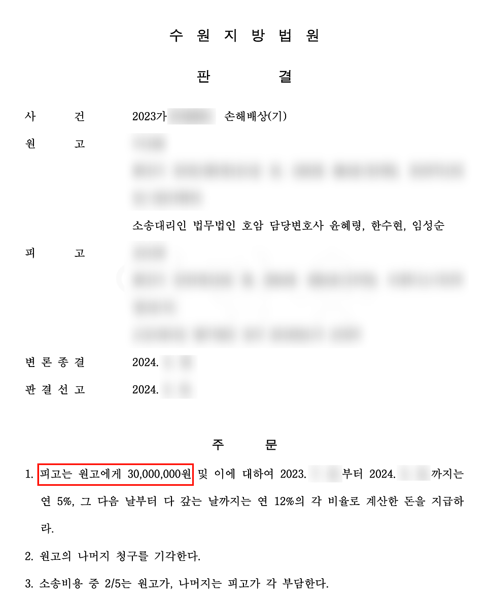 법무법인 호암 윤혜령, 한수현, 임성순 변호사가 담당했습니다