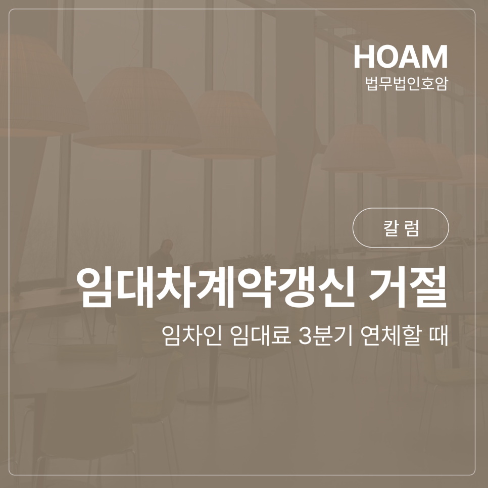 임대차계약에서 차임 연체는 임대인과 임차인 사이의 가장 중요한 요소인 신뢰가 깨졌다는 명백한 신호입니다. 그래서 법은 임차인의 보호를 위해 갱신요구권을 인정하면서도, 임대인이 정당하게 계약을 종료할 수 있는 사유를 분명하게 마련해 두었습니다. 그중 하나가 바로 **'3기 차임 연체 사실'**입니다. 과거에 연체가 있었다는 사실만으로도 임대인은 임차인의 갱신 요구를 거절할 수 있으며, 이는 대법원 판례로도 확립된 법리입니다. 따라서 임대인은 불필요한 부담을 느끼거나 임차인의 주장에 주눅 들 필요가 없습니다. 법무법인 호암은 임대인의 권리를 보호하기 위해 상황 분석부터 증거 정리, 갱신 거절 통지, 이후 분쟁 대응까지 전 과정을 함께합니다. 임대차계약으로 걱정이 있다면 언제든 부담 없이 법무법인 호암으로 찾아주시기 바랍니다.
