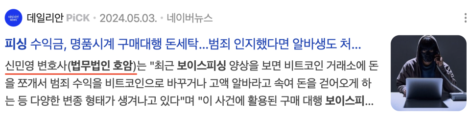 - "요즘 뉴스에 보이스피싱이 하루도 빠짐없이 나오는데, 왜 의심하지 않았는가?"