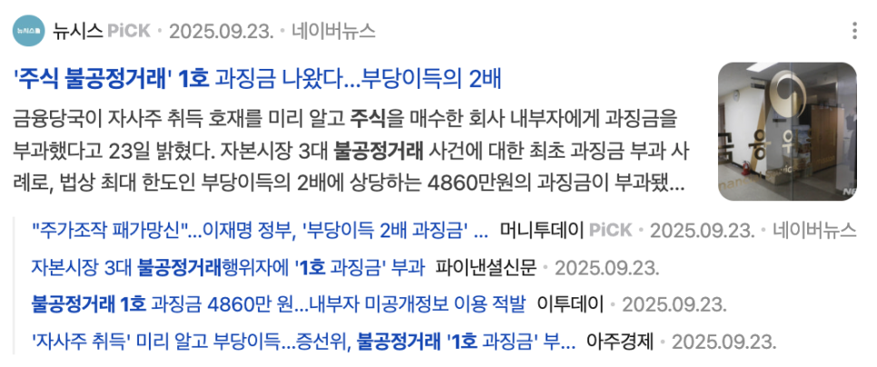 2. 2025년 9월, 자본시장 첫 과징금 부과 사례
