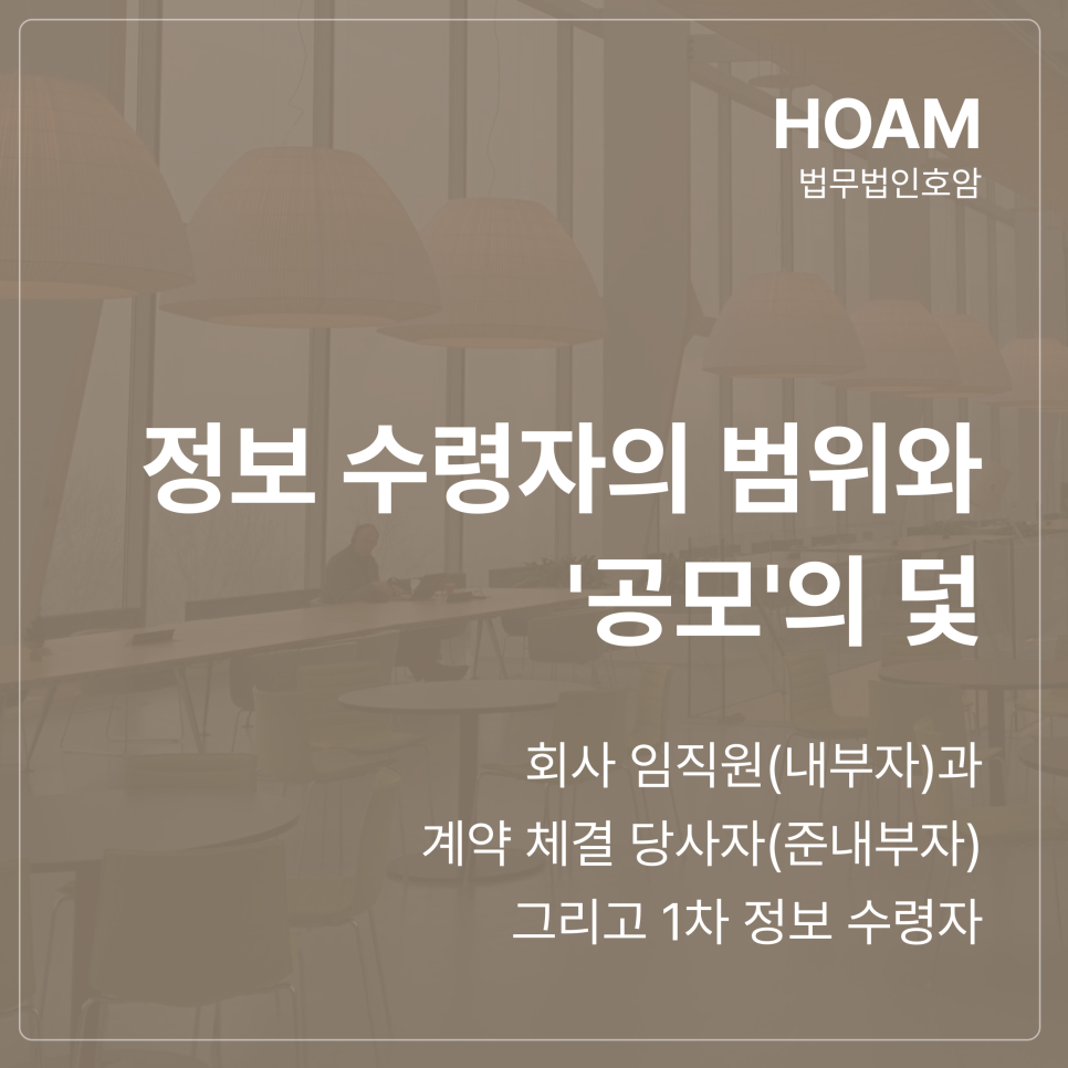 처벌 대상은 회사 임직원(내부자)과 계약 체결 당사자(준내부자)에 그치지 않습니다. 이들로부터 정보를 직접 전달받은 1차 정보 수령자 역시 처벌 대상입니다.