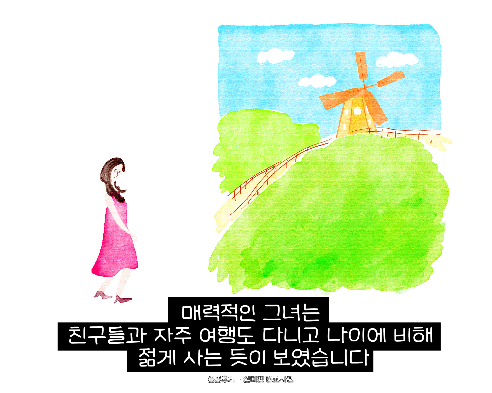 내 아내는 아직도 내 눈엔 참 매력적이다. 아직도 젊게 살고, 종종 친구들과 여행도 다니며 활기차다.