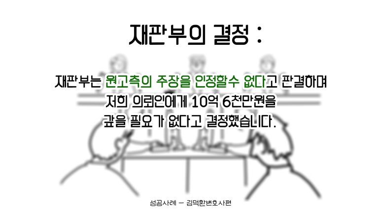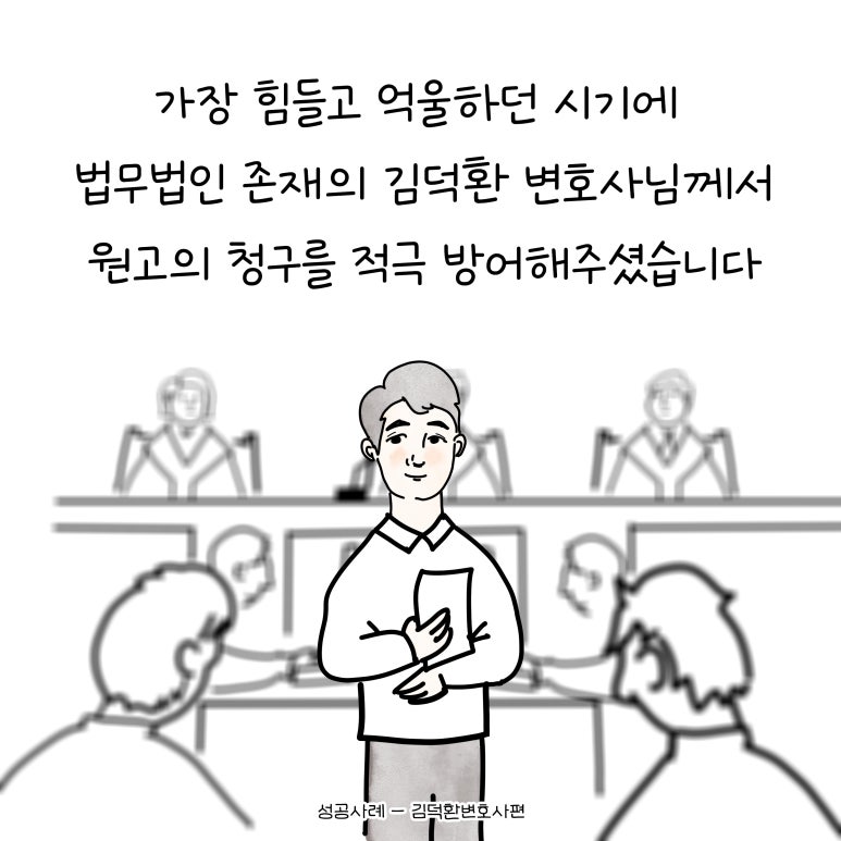 김덕환 변호사님은 사건을 정확히 파악하고 주도적으로 진행하셨다. 또한, 중요한 부분에 있어서는 부장판사출신 윤지상 변호사님과 함께 사건 회의 및 미팅을 진행하며 적극적으로 소송을 준비하셨다.
